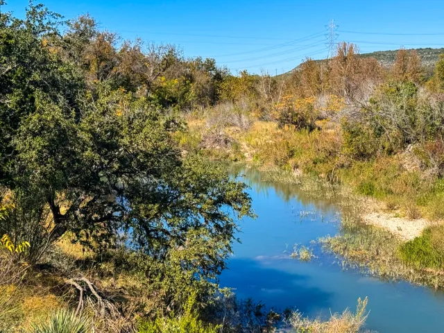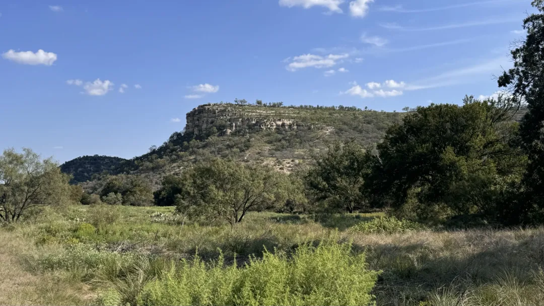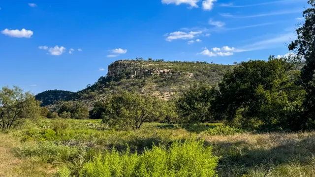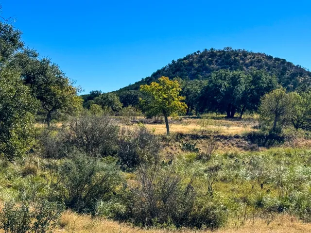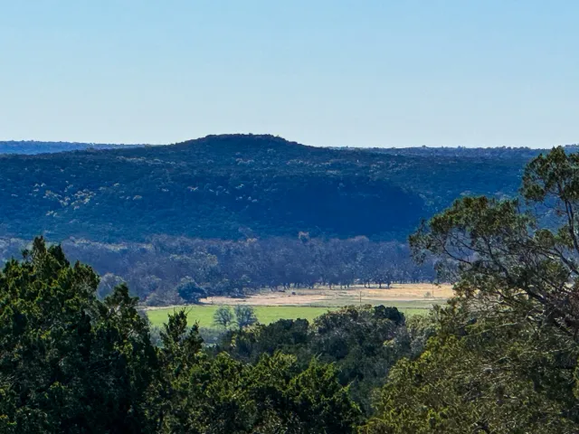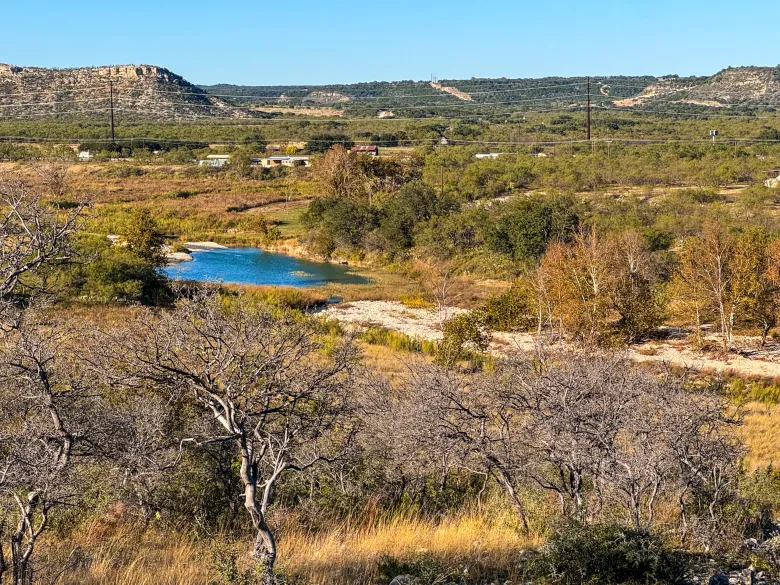 The landscape is rich with rolling hills, mountain ranges, riverfront access, and dramatic plateaus. The terrain creates natural beauty in every direction and allows for activities like hiking, wildlife watching, and simply soaking in the sunsets. The community sits next to the North Llano River and includes direct access to Train Mountain itself.